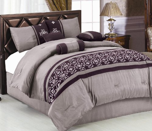 This designer comforter set features floral embroidery with stripes accent. Great for any bedroom. 3 decorative pillows included.