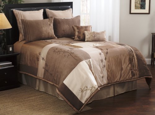 This beautiful comforter set is elegantly put together by combining original natural patterns with artistic elements of design. The unique piecing of the comforter and detailed embroideries on the shams and decorative pillows make this comforter set truly one of a kind.