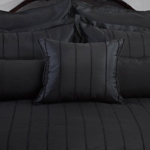The Braxton 4 piece comforter set is a great ensemble, made in the usa from imported fabric, featuring a clean and sophisticated linear design. The set includes the two shams, comforter, and the bedskirt.