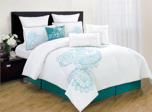 This amazing set will transfer your bedroom into a lovely retreat. Grand paisley designs on white ground gives your bedroom a timeless and elegant appeal.2 Euro shams and 3 decorative pillows included .