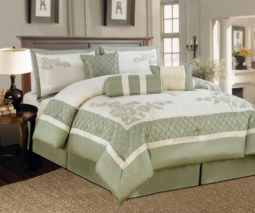This beautiful ensemble features floral and lattice border in serene sage and ivory, an eclectic set that will be great for any bedroom. 3 decorative pillows included.