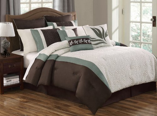 This quilted comforter set has a refreshing appeal and cozy touch. The comforter is beautifully quilted to add texture and dimension. Uniquely design decorative pillows and euro shams further compliment the look..