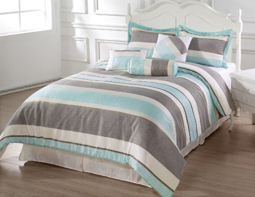 A 7 pieces comforter set like this looks really great on a master's bedroom or a bachelor bed. It's sleek, minimalist and monotone, but very classy.