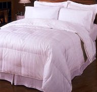 This Luxurious Royal Tradition white goose down comforter features a down-proof cover of 300 Thread Count hypoallergenic fabric in 100% Egyptian cotton with a Damask stripe. It's edged with double Self piping for a clean finish. Anti-microbial treatment keeps the down fresh, while its 14 inch baffle box construction allows for maximum warmth and even down distribution. Filling this elegant, over sized comforters is 650 fill power white goose down