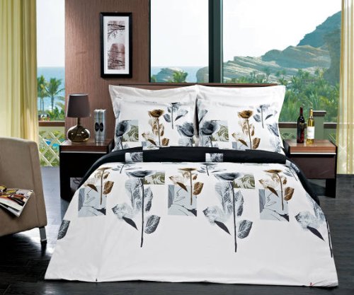 - Luxury Hanna 3-pc King/Cal-King Duvet-Cover-Set include Colors White, Blue/Gray and Brown