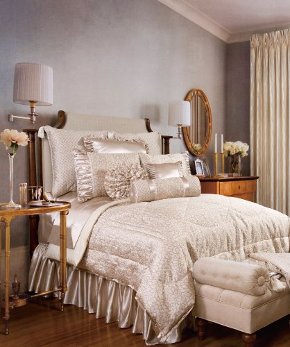 Jennifer Taylor 10-piece Comforter Set, California King size, LUMINA Collection, Off-White, ( Includes 1 Comforter 104''X96'', 1 Bed Skirt 72''X84''+18'', 3 Euro Shams 26''X26'', 2 King Shams 21''X37'', 3 Decor Shams).