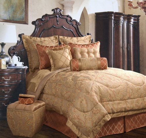 Jennifer Taylor 4-piece Comforter Set, California King Size, ALAMOSA Collection, Gold, (Includes 1 Comforter 104''X96'', 1 Bed Skirt 72''X84''+18'', 2 King Sham 21''X37'').