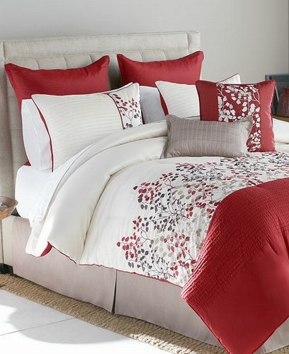 Boasting luxe embroidery and pleated details, the Ava comforter sets offer distinct texture and a vine and leaf design that dances upon a pristine white ground. A rich red hue adds lovely color to the set while shams, bedskirt and decorative pillows finish this look of autumnal beauty.